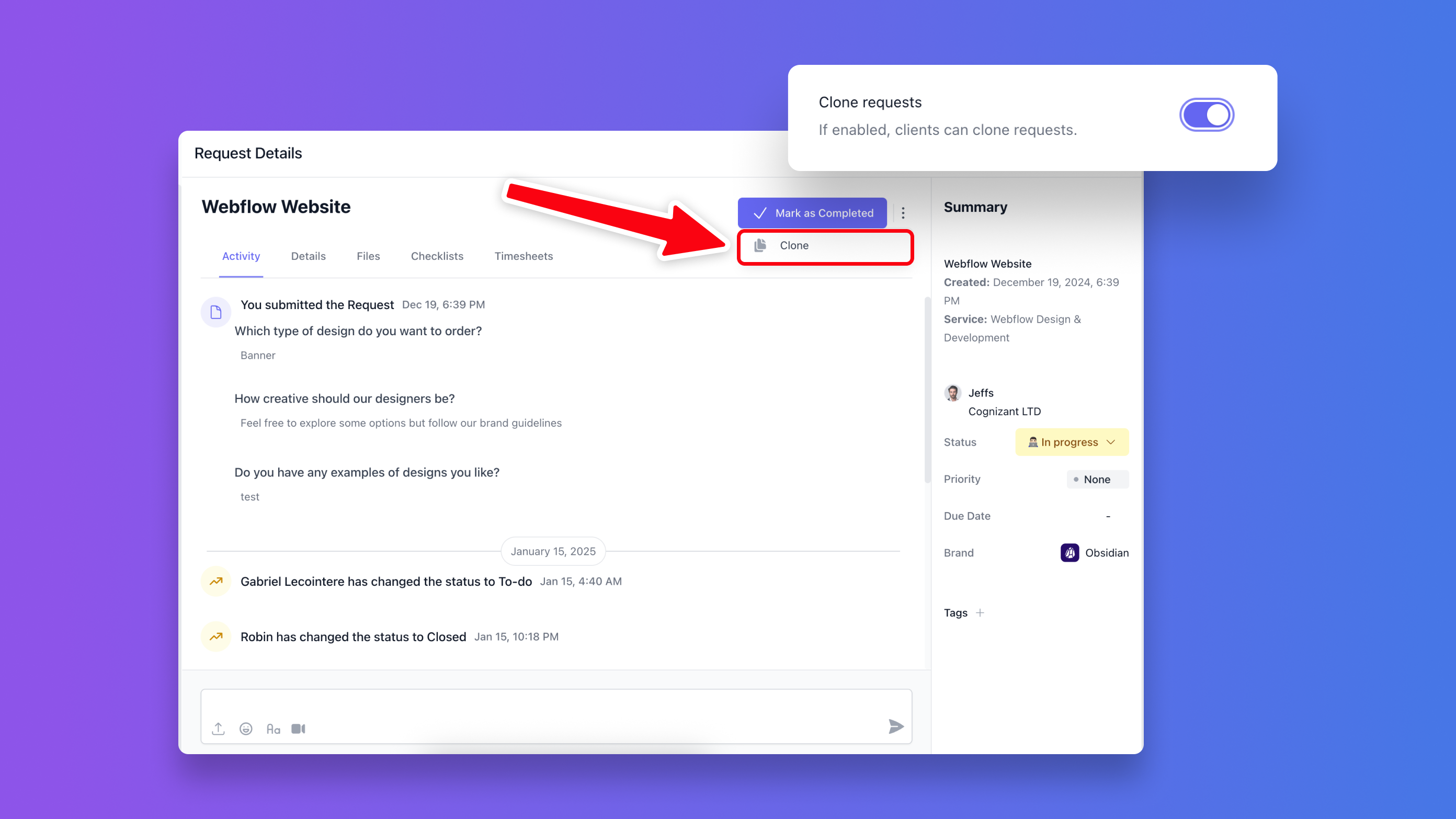 Clients now have the ability to clone existing requests.