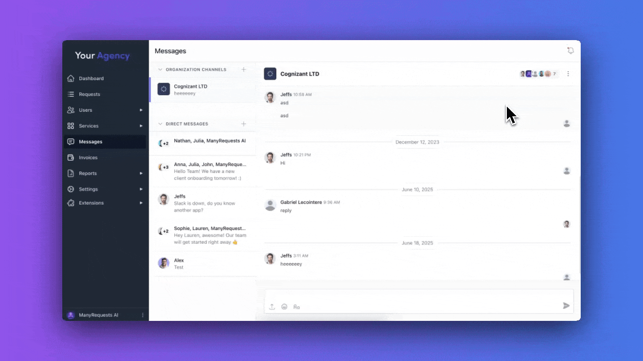 Separate spacesOrganization channels for company-wide news, Direct messages for focused conversations