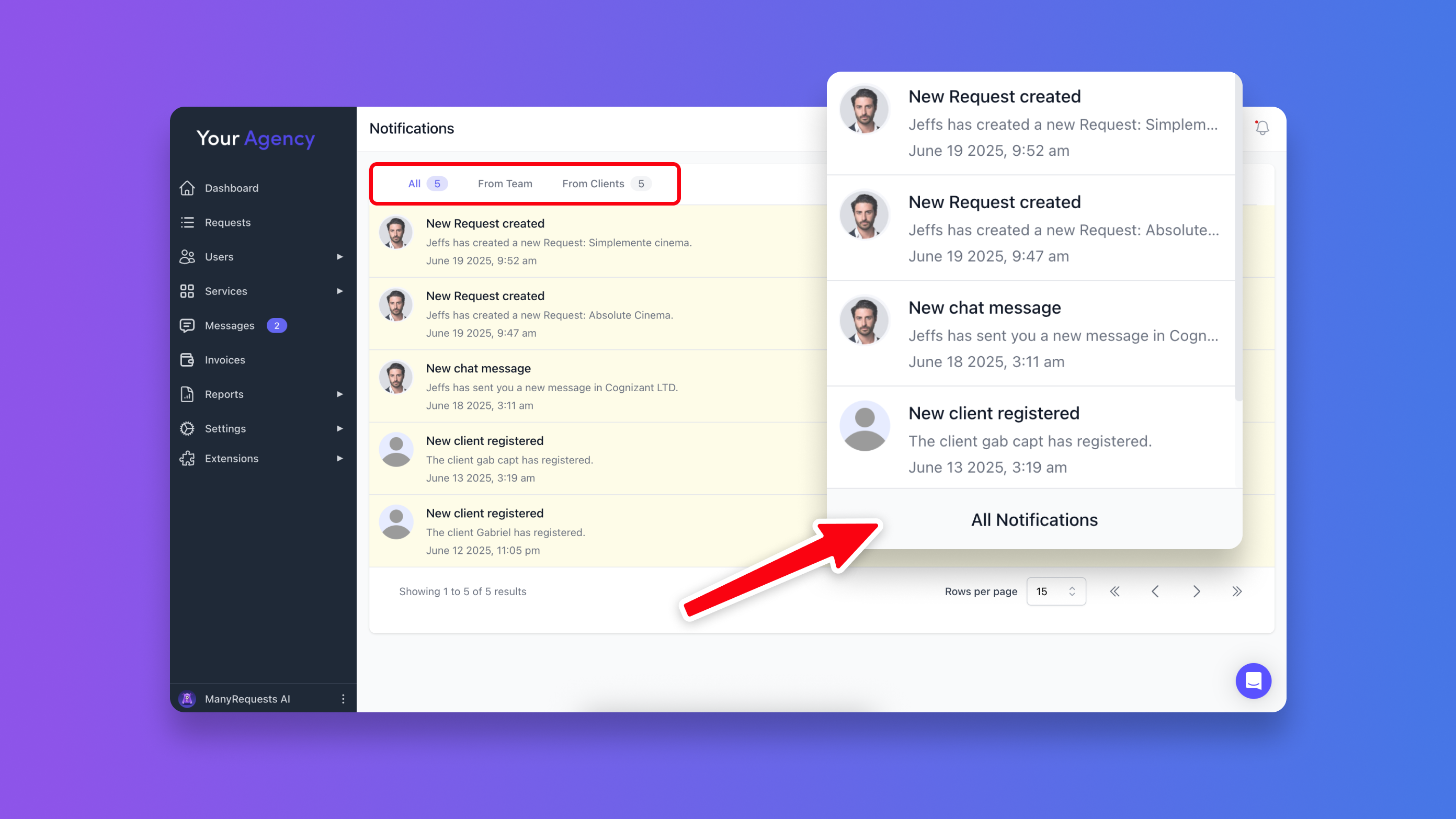 We combined both panels from the notifications dropdown into a single, streamlined view. Now, you can find all your notifications in one place.