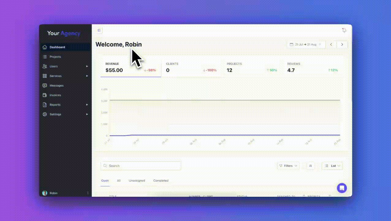 The sidebar is now collapsible, giving you more space to focus on projects and requests.